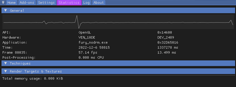 This tab shows performance metrics, what the effects are using, how much they are consuming, how they are looking on each pass, how they work… Usually, you won’t need to look there much unless you are developing or measuring a shader’s performance.